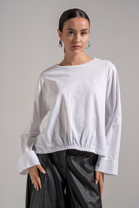 • Μπλούζα βαμβακερή με λάστιχο στη μέση