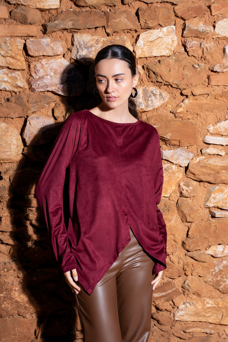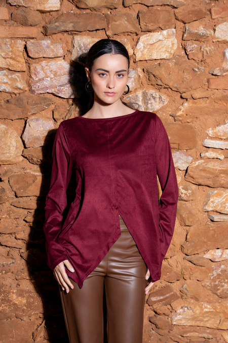 • Μπλούζα suede με ασύμμετρο κόψιμο