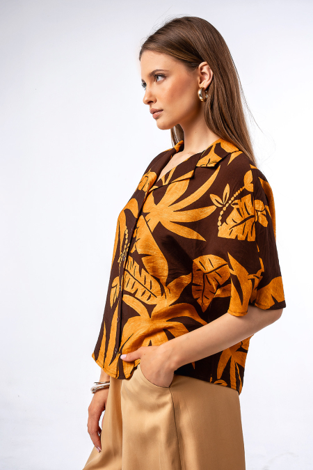 • Πουκάμισο με Floral Print σε Κίτρινο & Σιέλ – Αέρινη Γραμμή