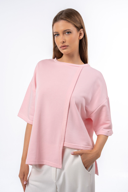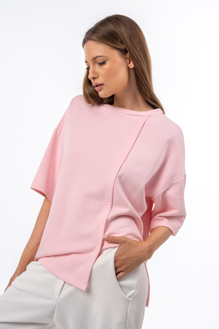 • Μπλούζα φούτερ ασύμμετρη με τρουκάρ μανίκι