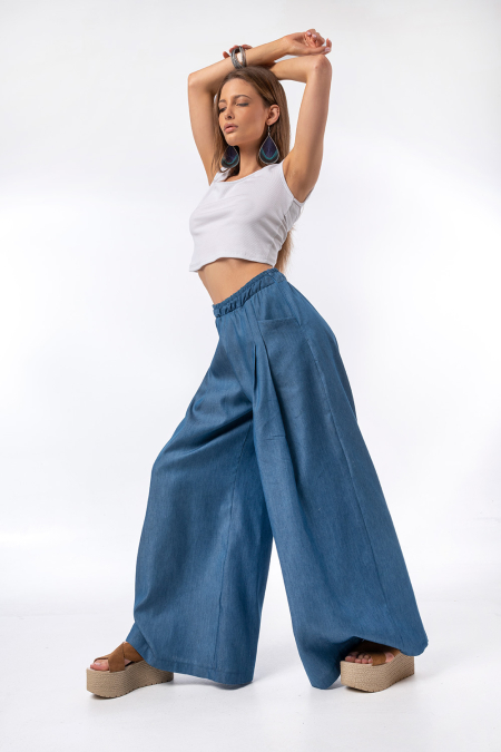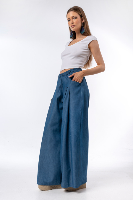 • Παντελόνι με φαρδιά γραμμή και κομψή εφαρμογή