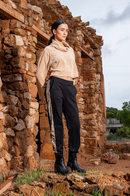• Παντελόνι jogger με animal print πλαϊνές λωρίδες