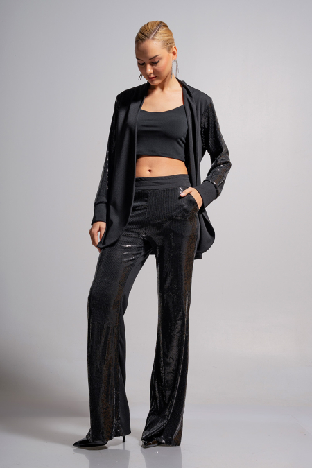 • Παντελόνι δερματίνη καμπάνα με παγιέτες