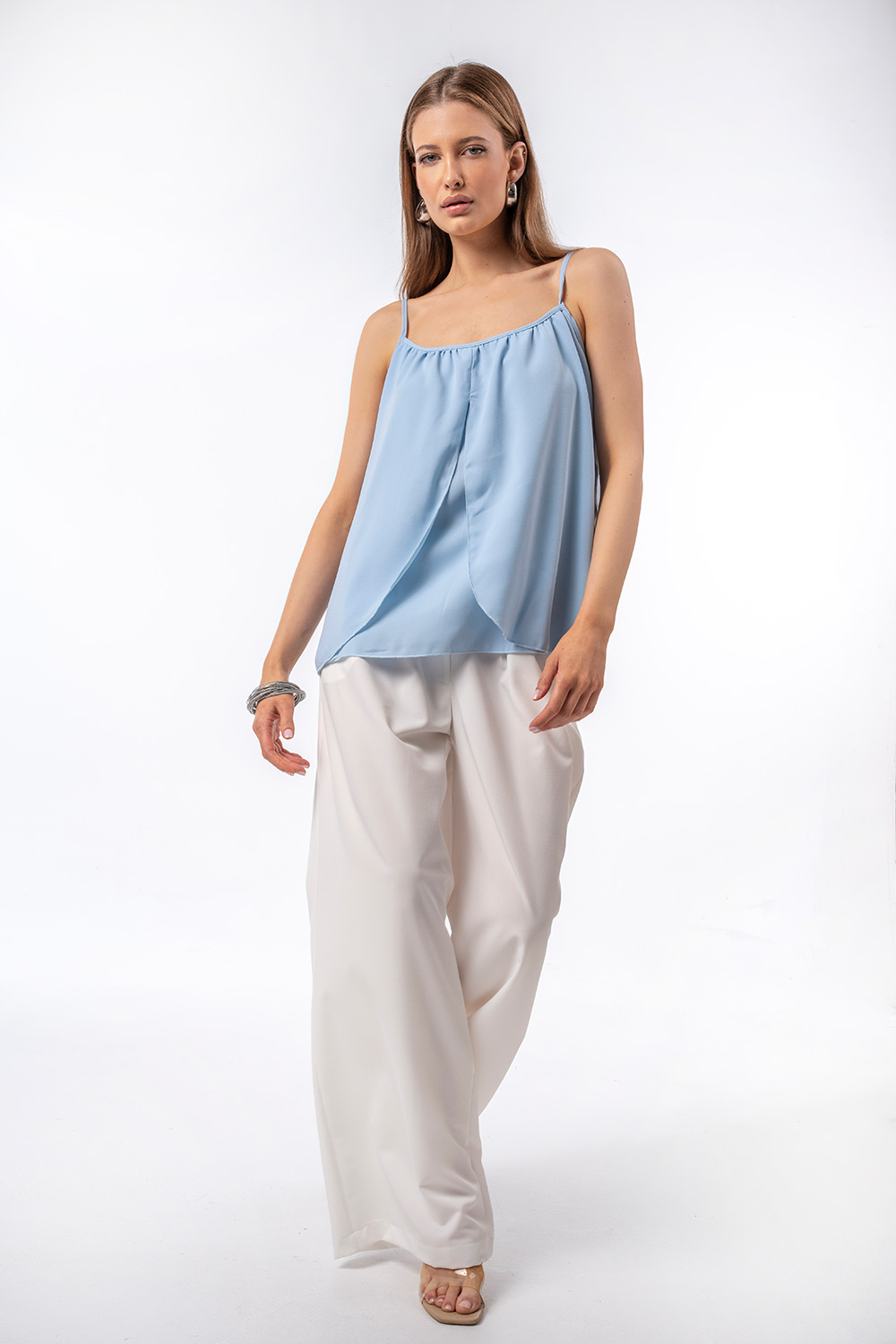 Οι λεπτές τιράντες και η ρευστή του εφαρμογή το καθιστούν ιδανικό για καλοκαιρινά looks, είτε φορεμένο μόνο του είτε σε συνδυασμό με παντελόνες ή φούστες για ένα πιο elegant αποτέλεσμα.