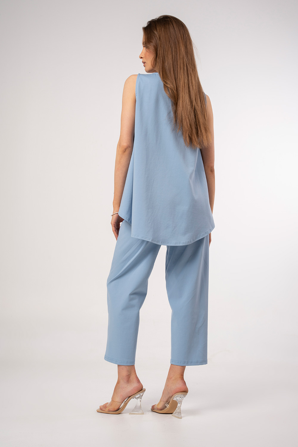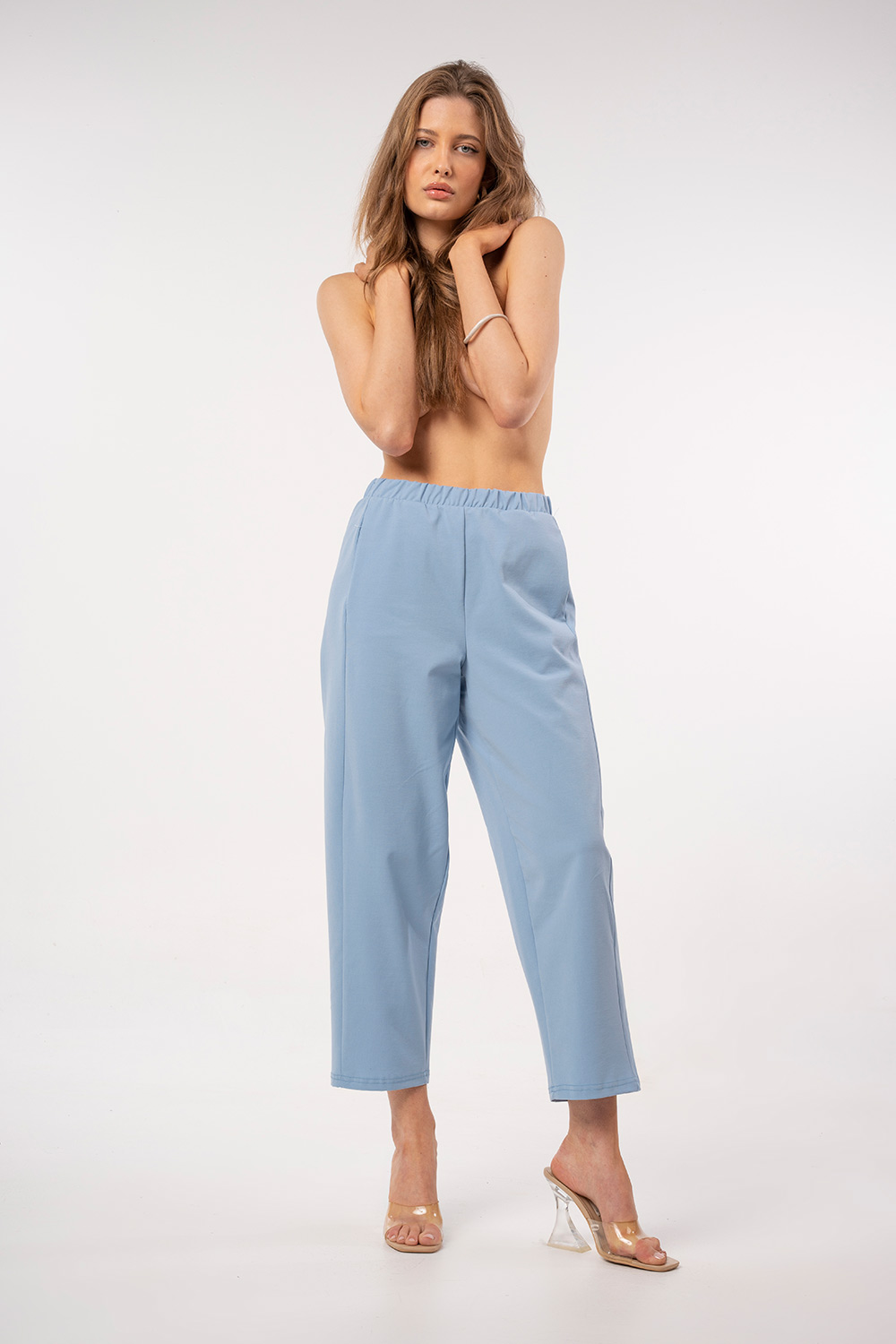 Άνετη και κομψή παντελόνα σε γαλάζια απόχρωση, με ελαστική μέση για τέλεια εφαρμογή και cropped μήκος που χαρίζει μοντέρνο ύφος. Η minimal γραμμή της την καθιστά ιδανική για καθημερινά αλλά και πιο προσεγμένα looks. Συνδυάζεται εύκολα με tops ή πουκάμισα για effortless chic εμφανίσεις.