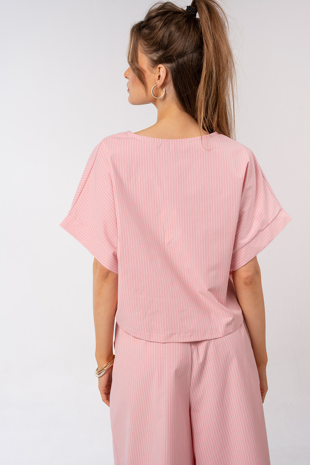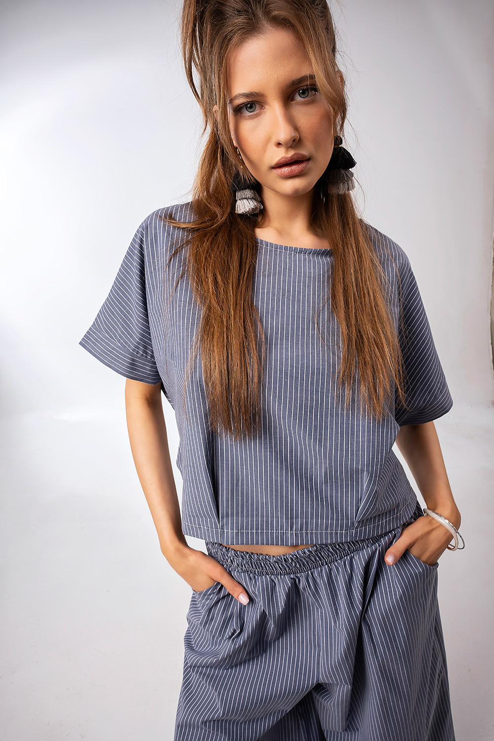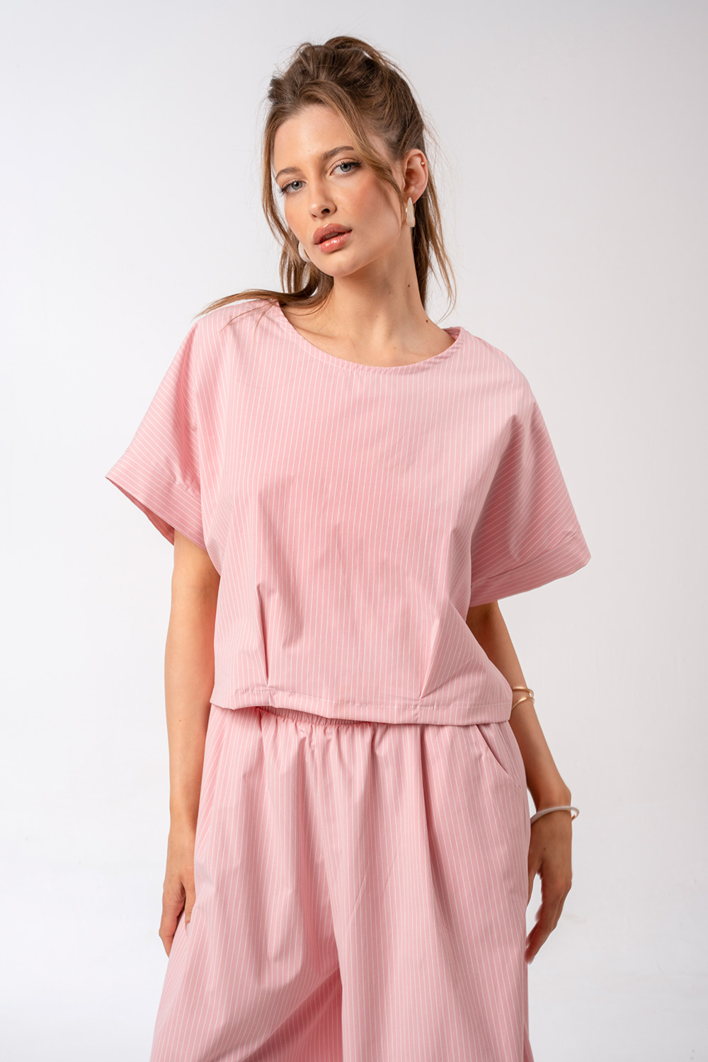 Κομψή και άνετη μπλούζα με διακριτικές ρίγες, ιδανική για καθημερινές εμφανίσεις αλλά και πιο προσεγμένα looks. Διαθέτει χαλαρή γραμμή που αγκαλιάζει το σώμα χωρίς να περιορίζει την κίνηση, ενώ το μαλακό ύφασμα προσφέρει ευχάριστη αίσθηση όλη μέρα. Συνδυάζεται εύκολα με παντελόνια ή φούστες, δημιουργώντας ένα σύγχρονο και στιλάτο σύνολο.