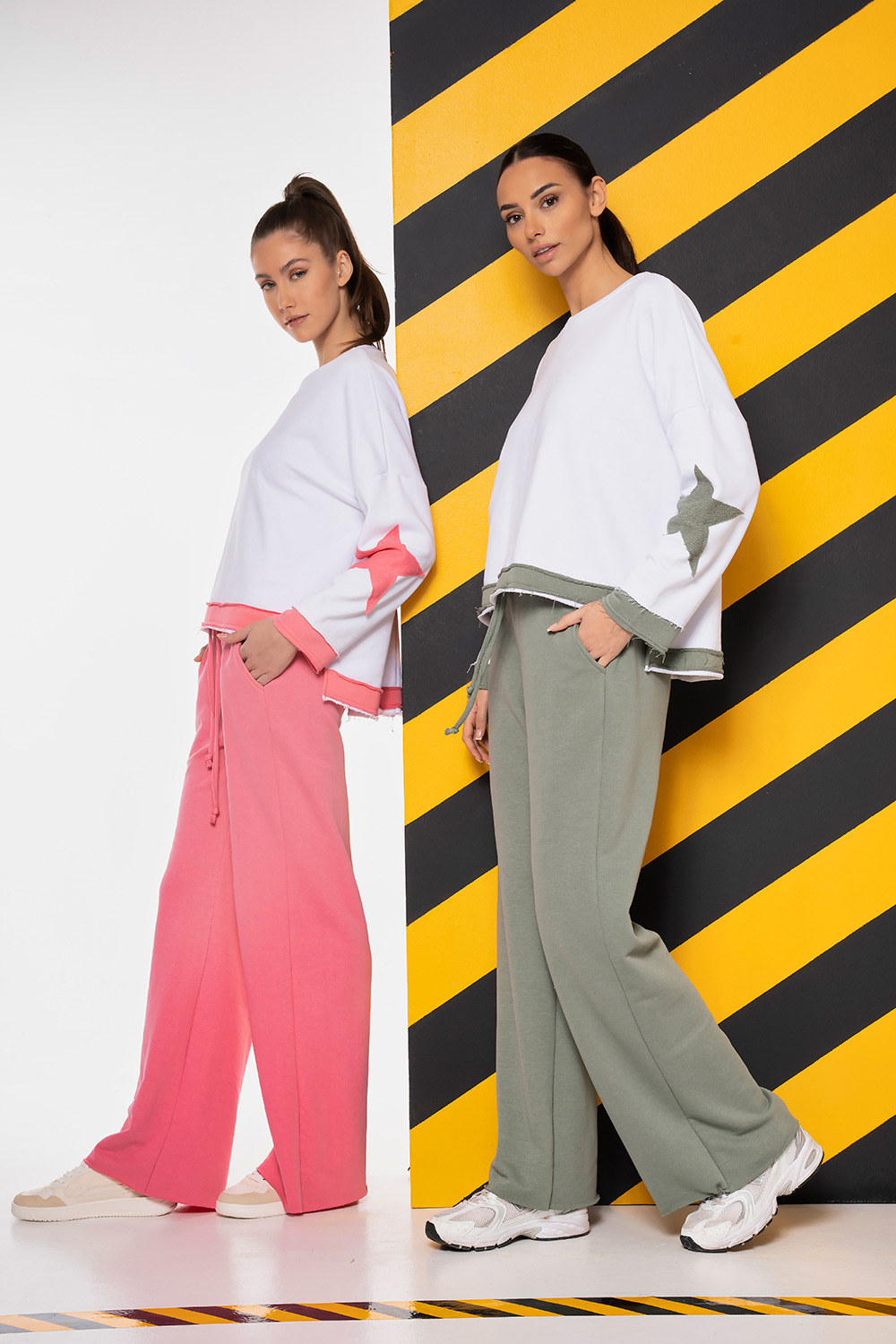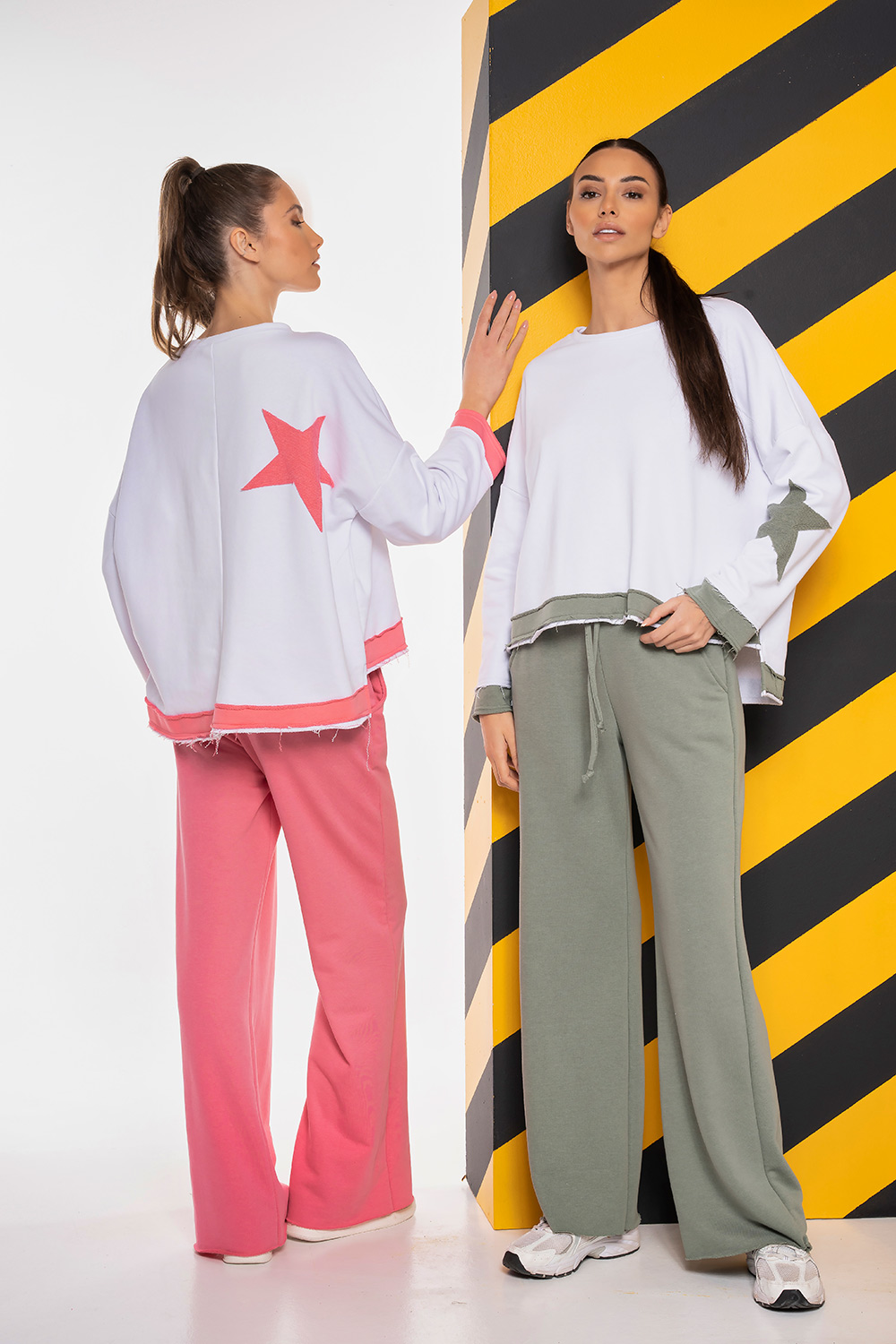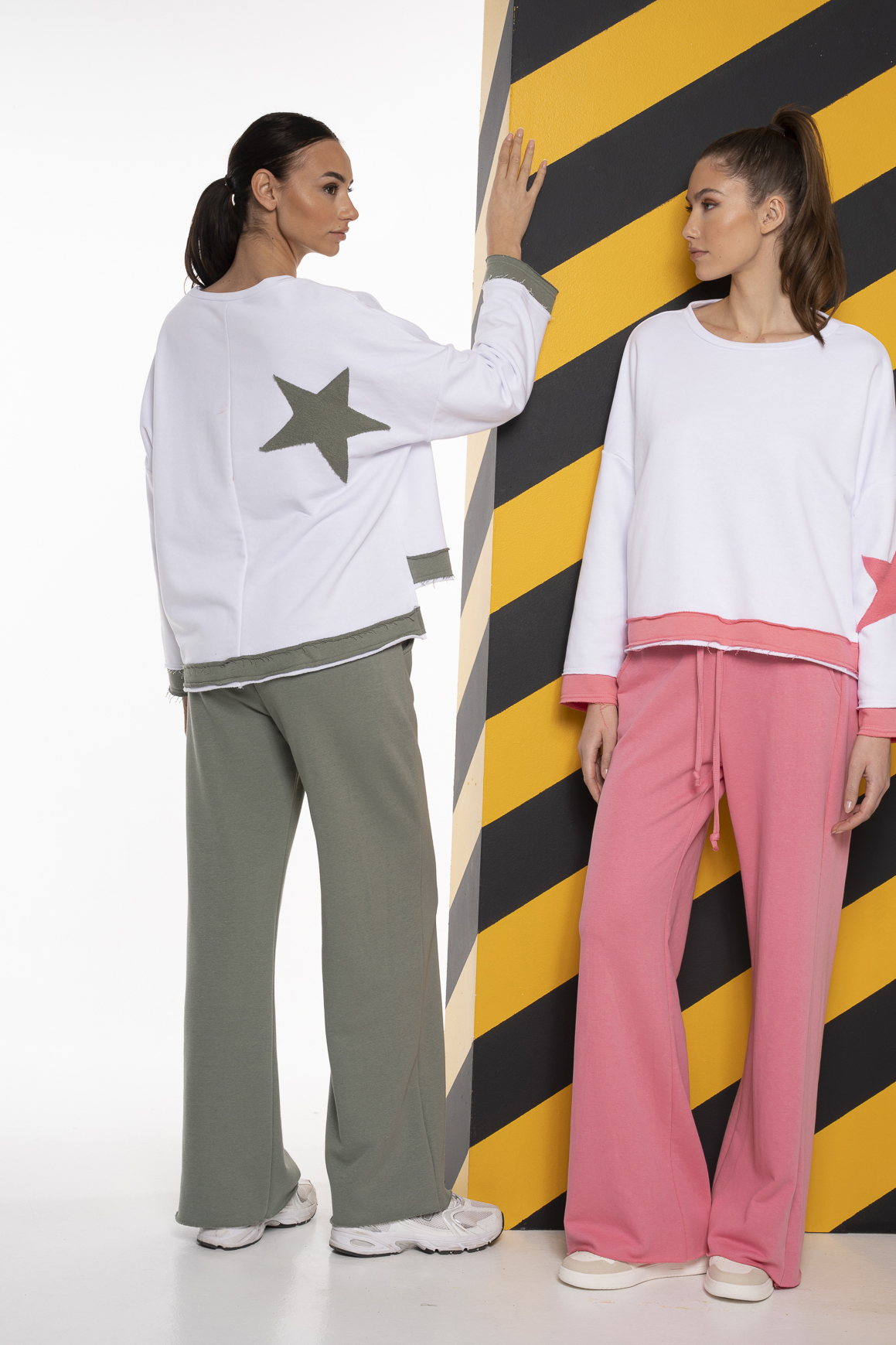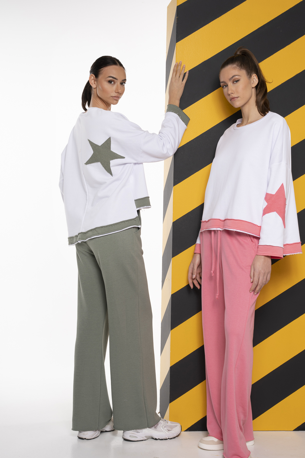 Aυτό το άνετο σετ loungewear ξεχωρίζει με τις παιχνιδιάρικες star λεπτομέρειες και τη χαλαρή γραμμή του. Το φαρδύ top και το άνετο παντελόνι προσφέρουν ευκολία στην κίνηση και μοντέρνο casual χαρακτήρα. Ιδανικό για καθημερινές εμφανίσεις, travel looks ή stylish στιγμές άνεσης.