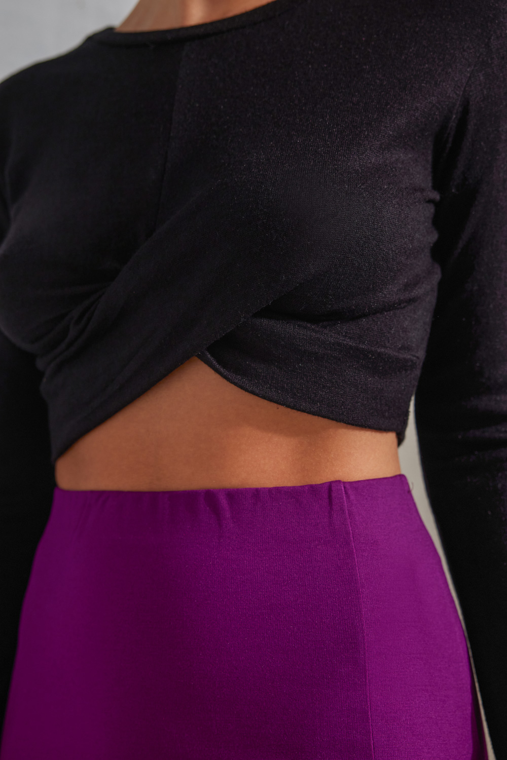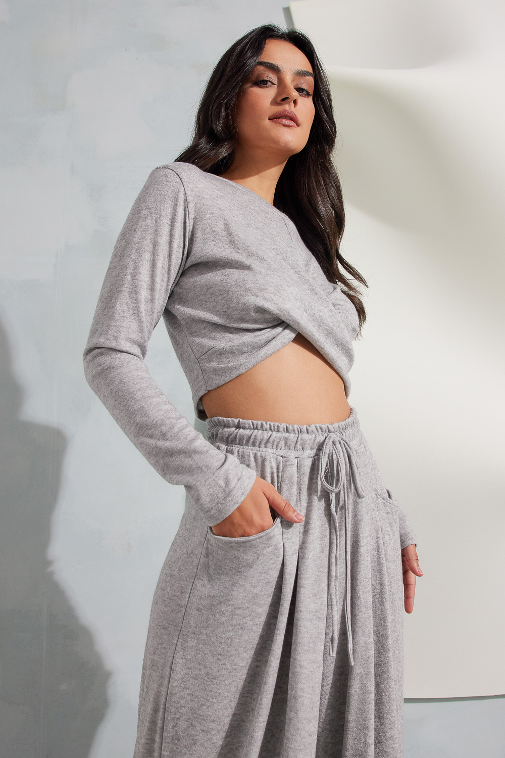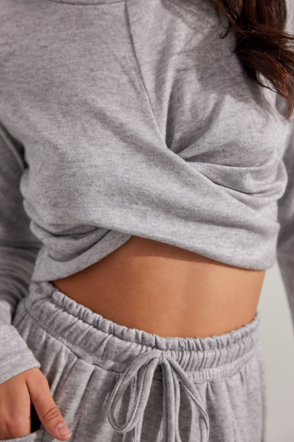 Αυτή η κροπ μπλούζα με μακριά μανίκια είναι κατασκευασμένη από μαλακό και ελαστικό ύφασμα για εξαιρετική εφαρμογή. Ξεχωρίζει για την πρωτότυπη σούρα στο μπροστινό μέρος, η οποία δημιουργεί ένα κομψό κόμπο και τονίζει διακριτικά τη μέση.