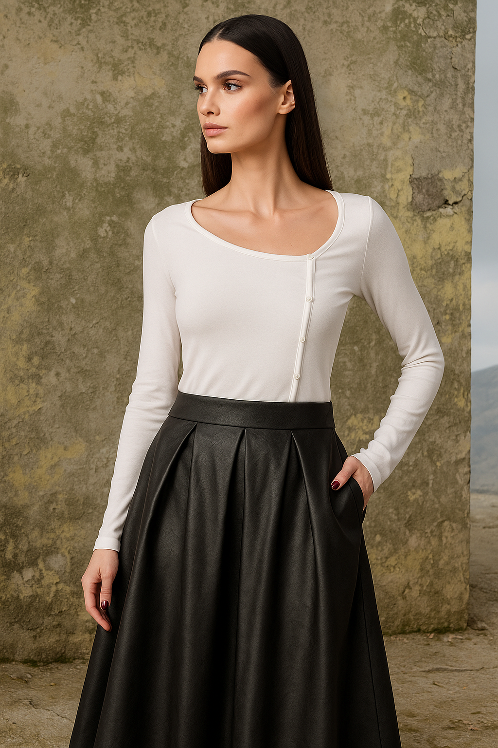 Αναδείξτε το καθημερινό σας στυλ με αυτή τη minimal μακρυμάνικη μπλούζα με κουμπάκια, ιδανική για άνεση και κομψότητα σε κάθε περίσταση. Κατασκευασμένη από απαλό, ελαφρύ πλεκτό ύφασμα, εφαρμόζει όμορφα στο σώμα, προσφέροντας φυσική ελαστικότητα και ευχάριστη αίσθηση όλη μέρα.