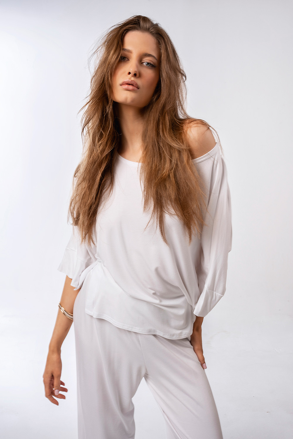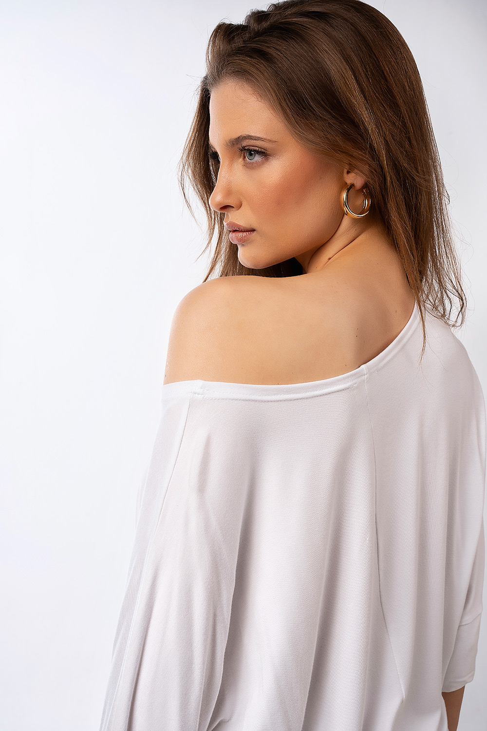 Κομψή και άνετη μπλούζα με έναν ώμο, ιδανική για stylish εμφανίσεις από το πρωί έως το βράδυ. Η χαλαρή γραμμή της χαρίζει ελευθερία κινήσεων και μοντέρνα αισθητική, ενώ το απαλό ύφασμα προσφέρει ευχάριστη εφαρμογή. Φοριέται εύκολα μόνη της ή ως σετ και προσαρμόζεται σε κάθε στυλ.
