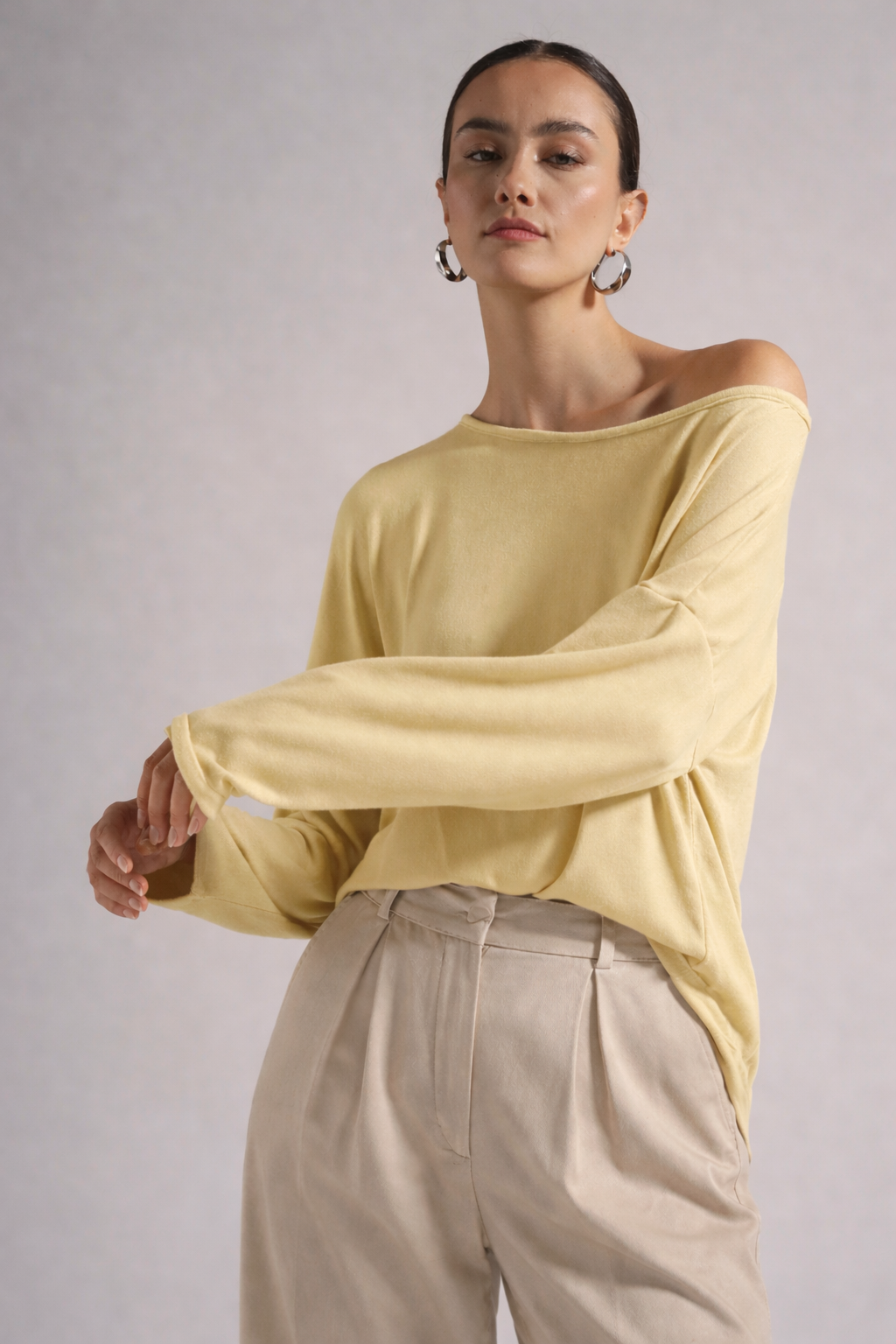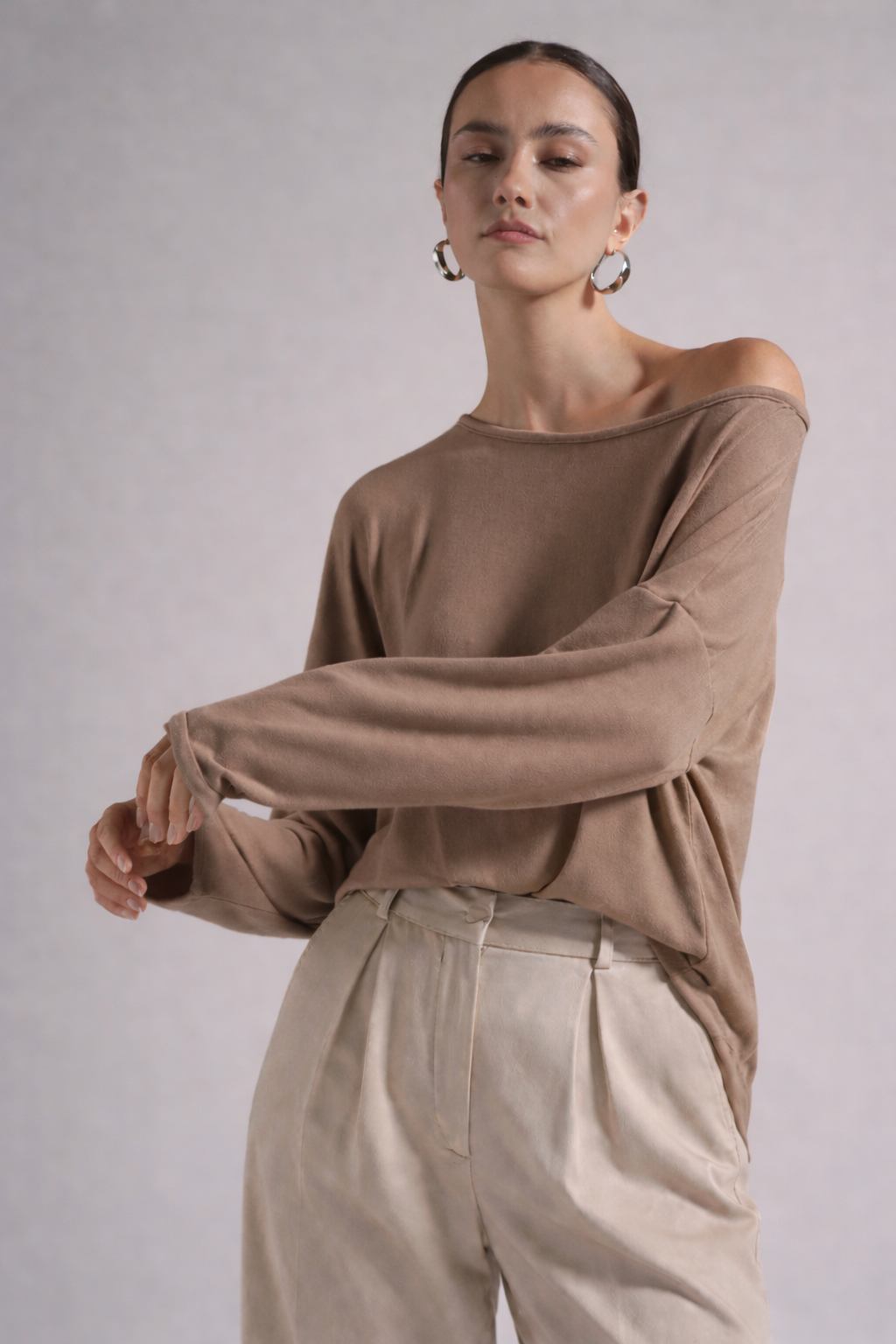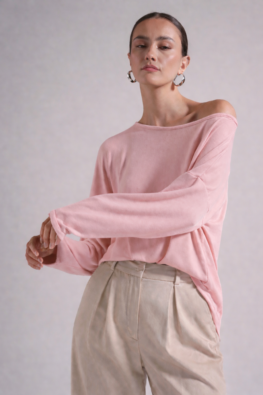 Minimal μπλούζα με off-shoulder λαιμόκοψη και χαλαρή γραμμή, σχεδιασμένη για άνετη και κομψή εφαρμογή. Η απαλή υφή της αγκαλιάζει το σώμα, προσφέροντας ευκολία στην κίνηση και διαχρονικό στυλ. Φοριέται από το πρωί έως το βράδυ και συνδυάζεται εύκολα με παντελόνια ή φούστες, δημιουργώντας effortless καθημερινά αλλά και πιο refined looks.