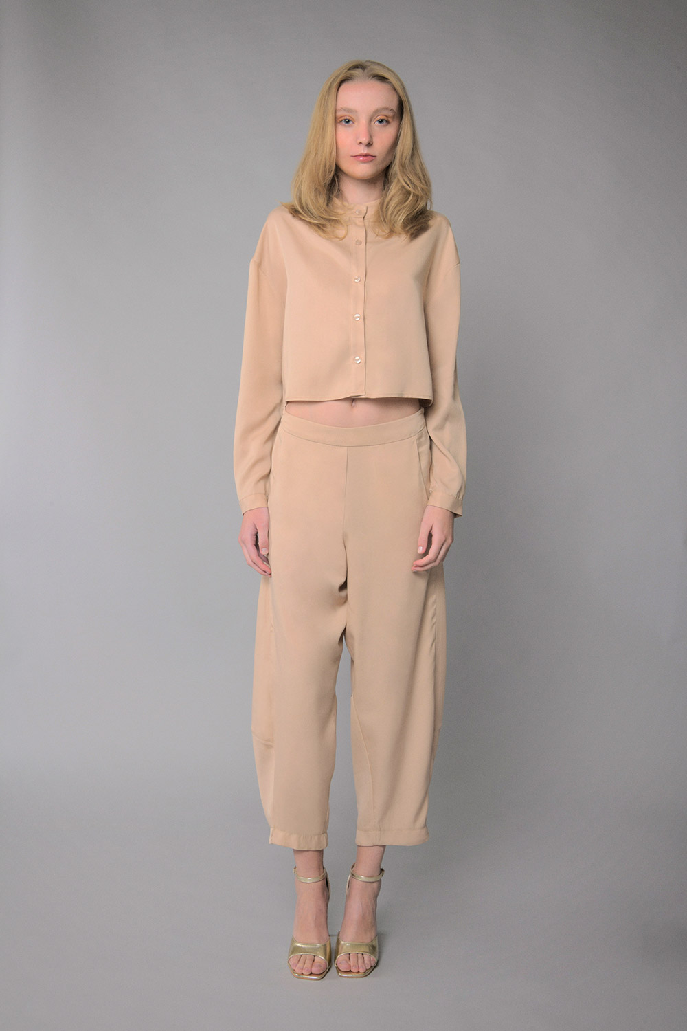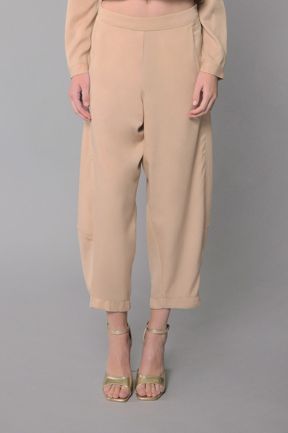 Γυναικείο παντελόνι τύπου barrel με χαρακτηριστική στρογγυλεμένη γραμμή που προσφέρει άνεση και μοντέρνο στυλ. Διαθέτει άνετη εφαρμογή στη μέση και χαλαρό τελείωμα, δημιουργώντας μια σύγχρονη και fashion-forward σιλουέτα. Ιδανικό για all-day εμφανίσεις, συνδυάζεται εύκολα με πουκάμισα, μπλούζες ή tops για κομψά, σύγχρονα looks.