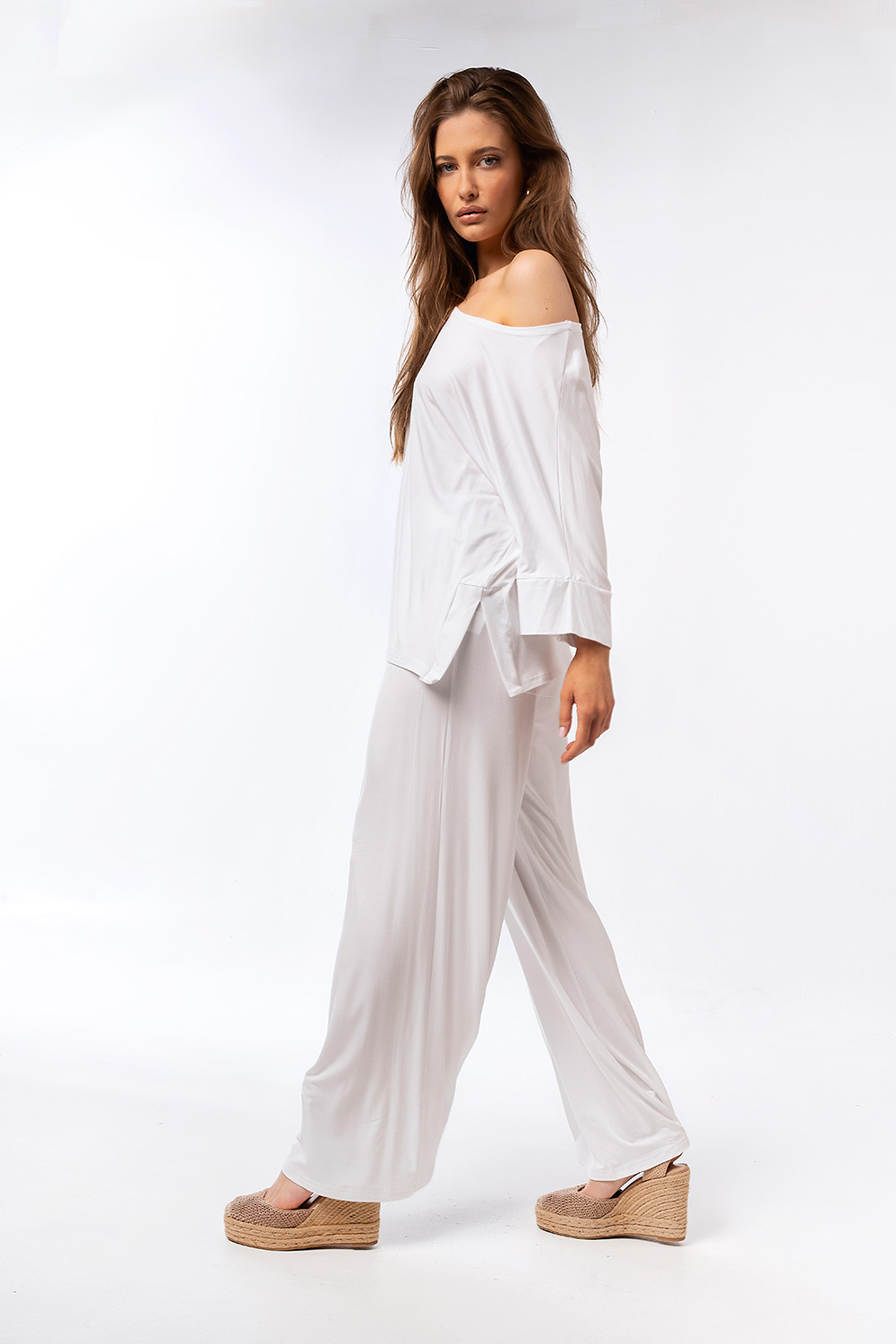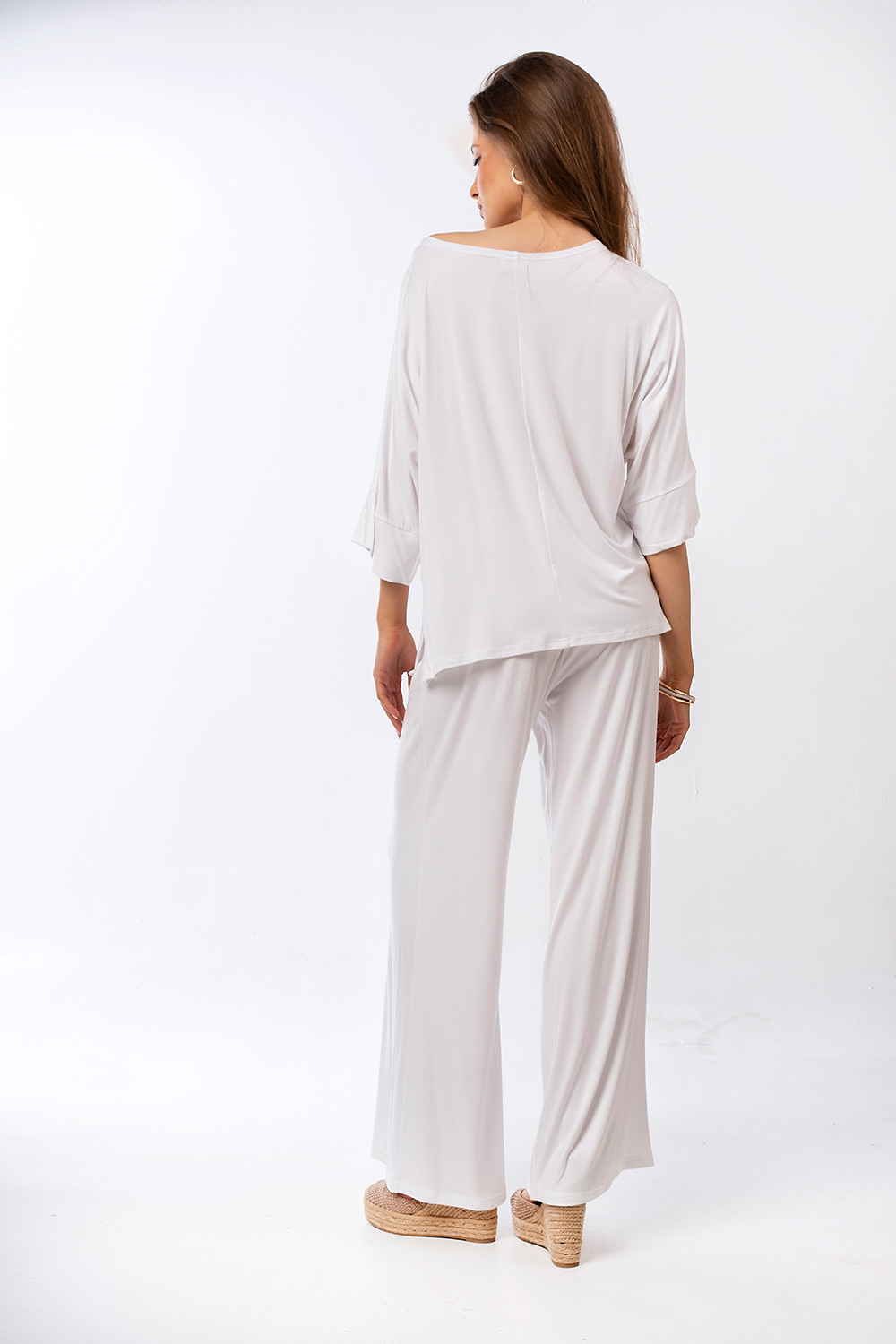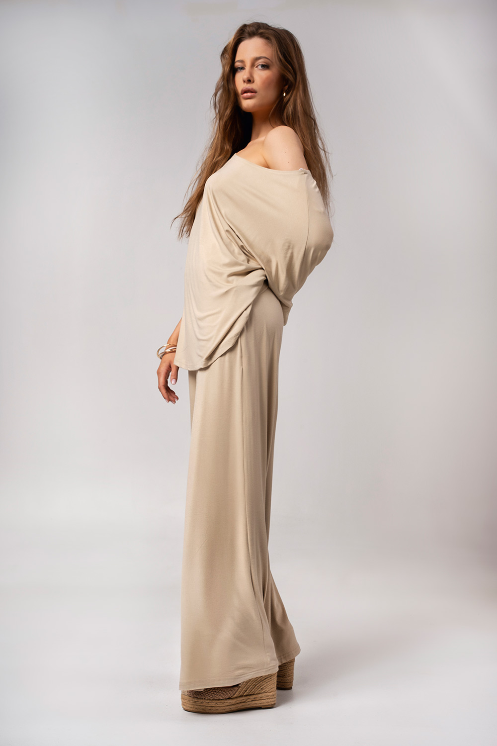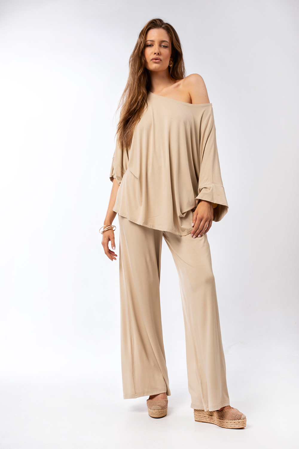 Minimal και διαχρονικό παντελόνι με φαρδιά γραμμή που κολακεύει τη σιλουέτα. Σχεδιασμένο για άνεση όλη μέρα, αποτελεί ιδανική επιλογή για casual αλλά και πιο προσεγμένες εμφανίσεις. Συνδυάζεται τέλεια με τη μπλούζα του σετ ή με άλλα basic κομμάτια της γκαρνταρόμπας.
