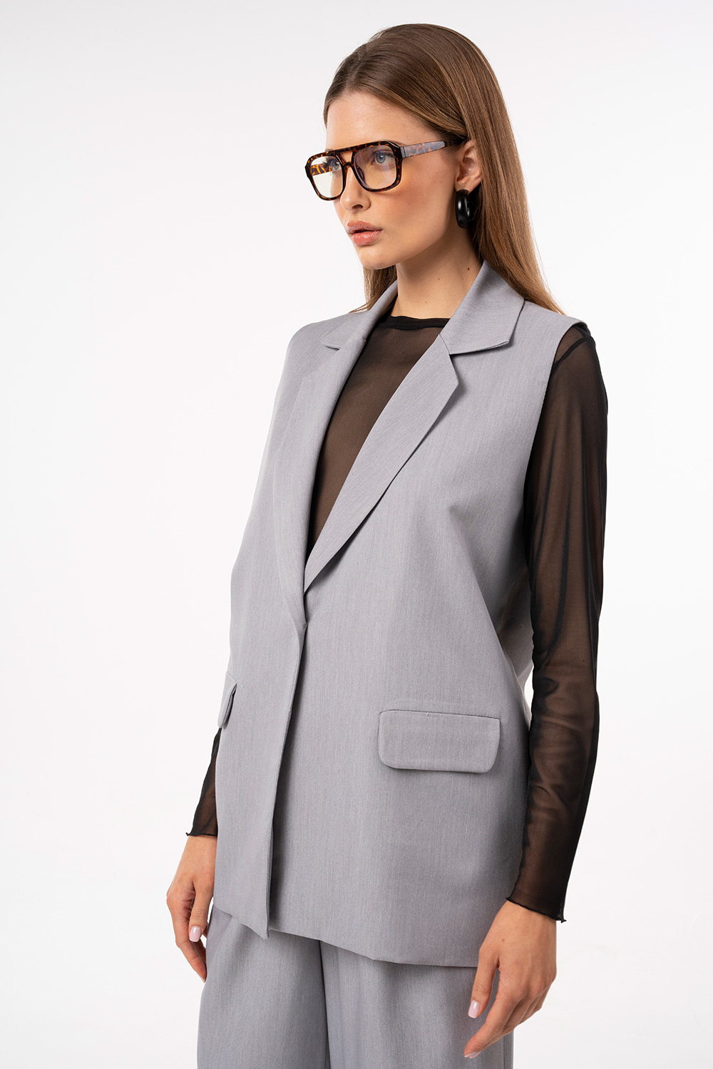 Minimal και σύγχρονο αμάνικο σακάκι με κλασικό πέτο που προσδίδει κομψότητα σε κάθε εμφάνιση. Η ίσια γραμμή του αγκαλιάζει διακριτικά το σώμα, ενώ το διαχρονικό σχέδιο το καθιστά ιδανικό για layering πάνω από tops ή πουκάμισα. Φοριέται άνετα από το πρωί έως το βράδυ, τόσο σε casual όσο και σε πιο προσεγμένες εμφανίσεις, μόνο του ή ως μέρος σετ.