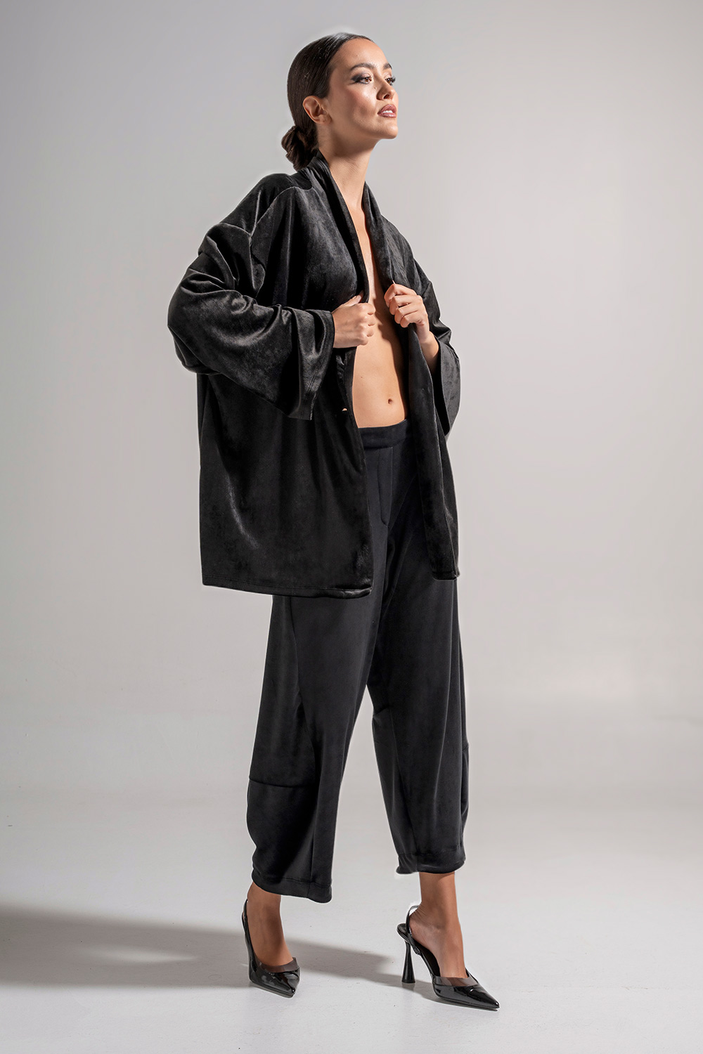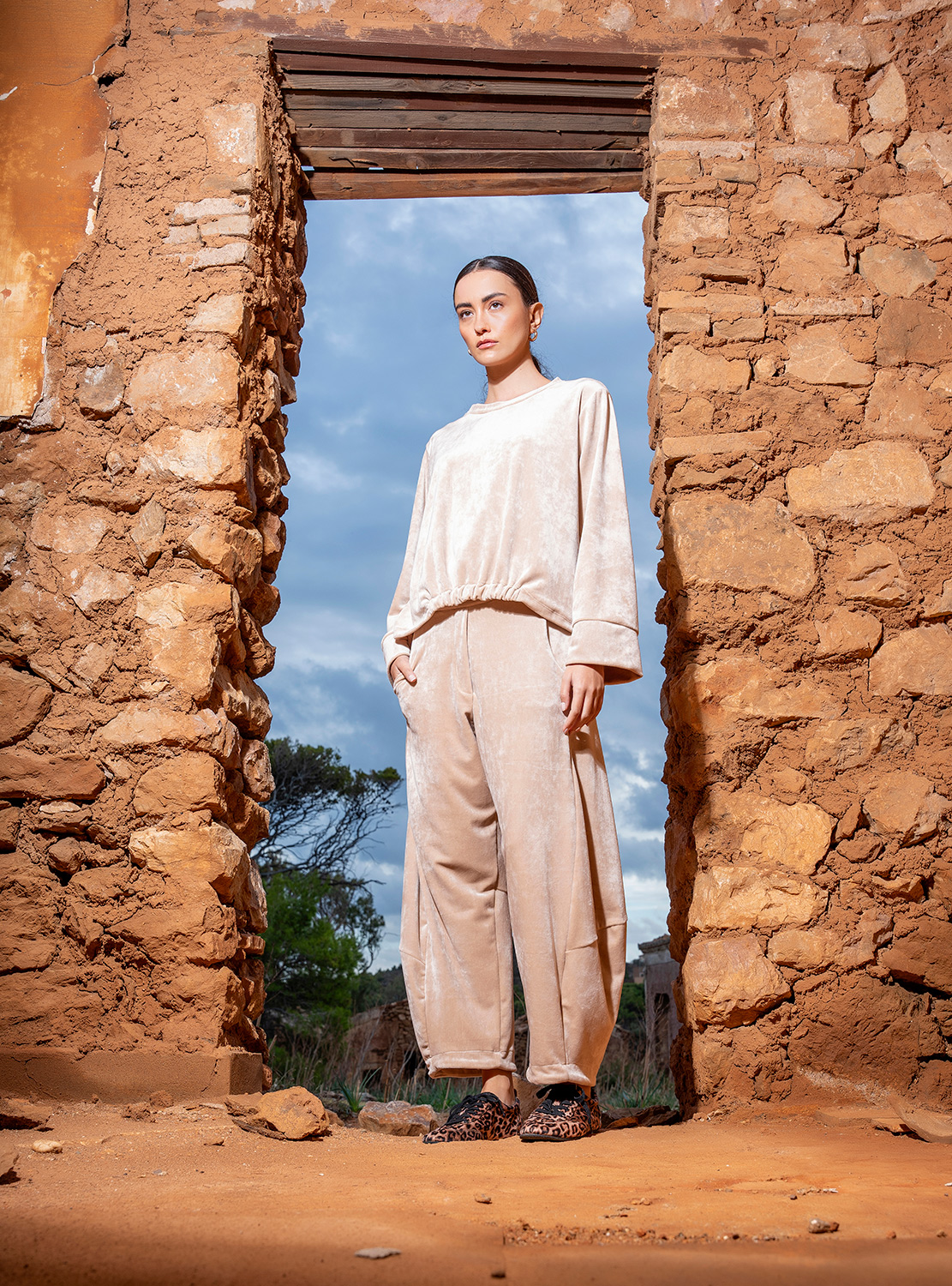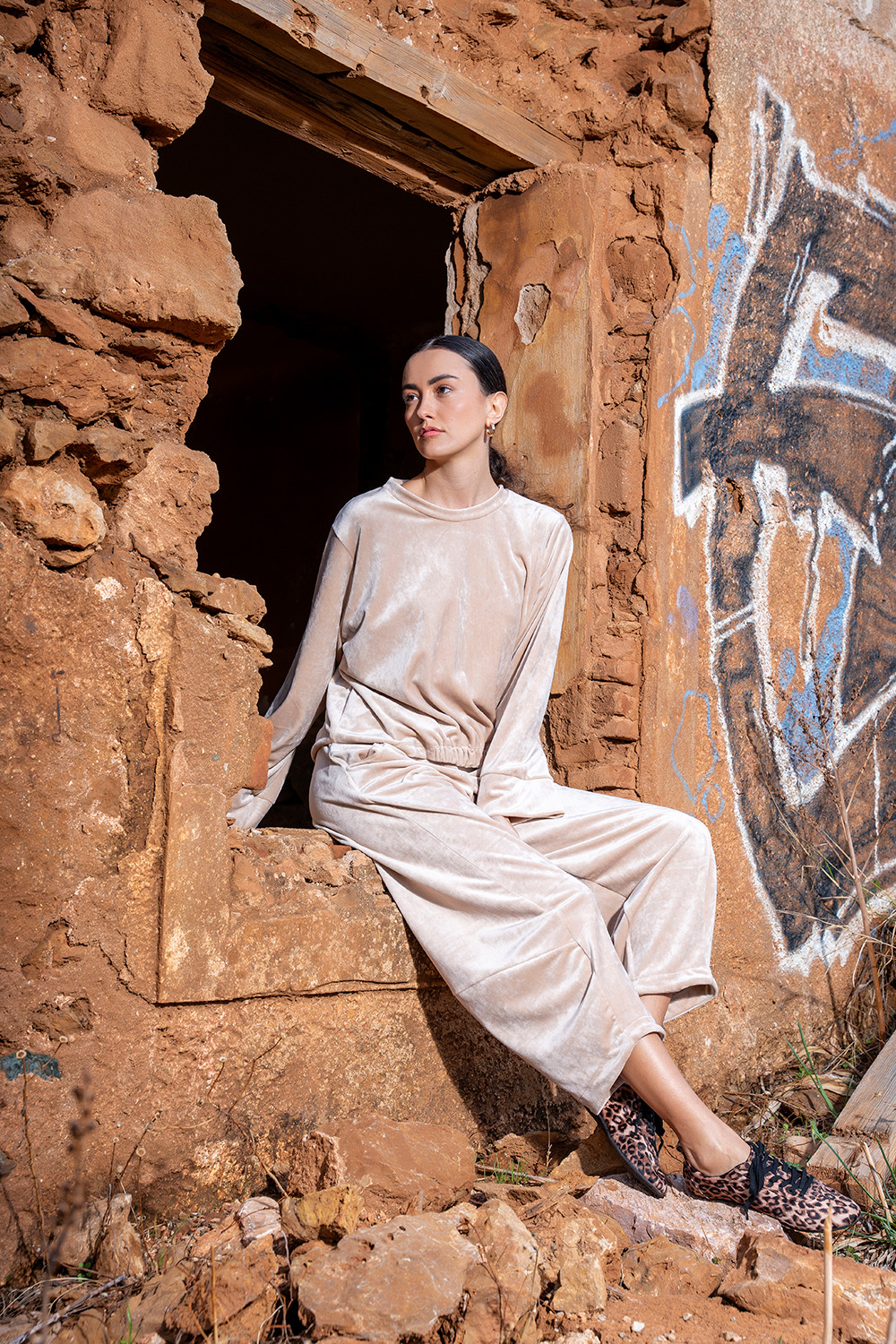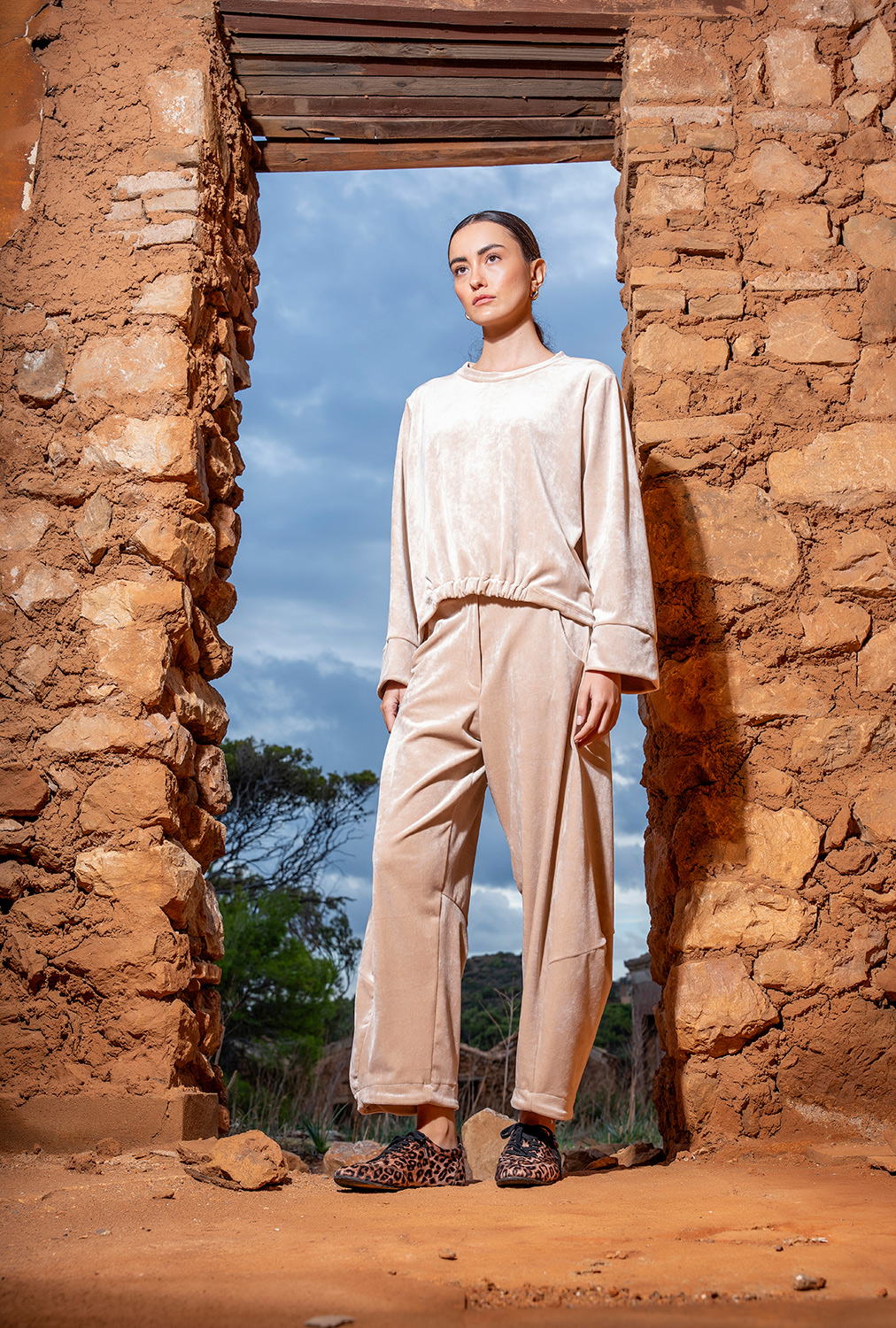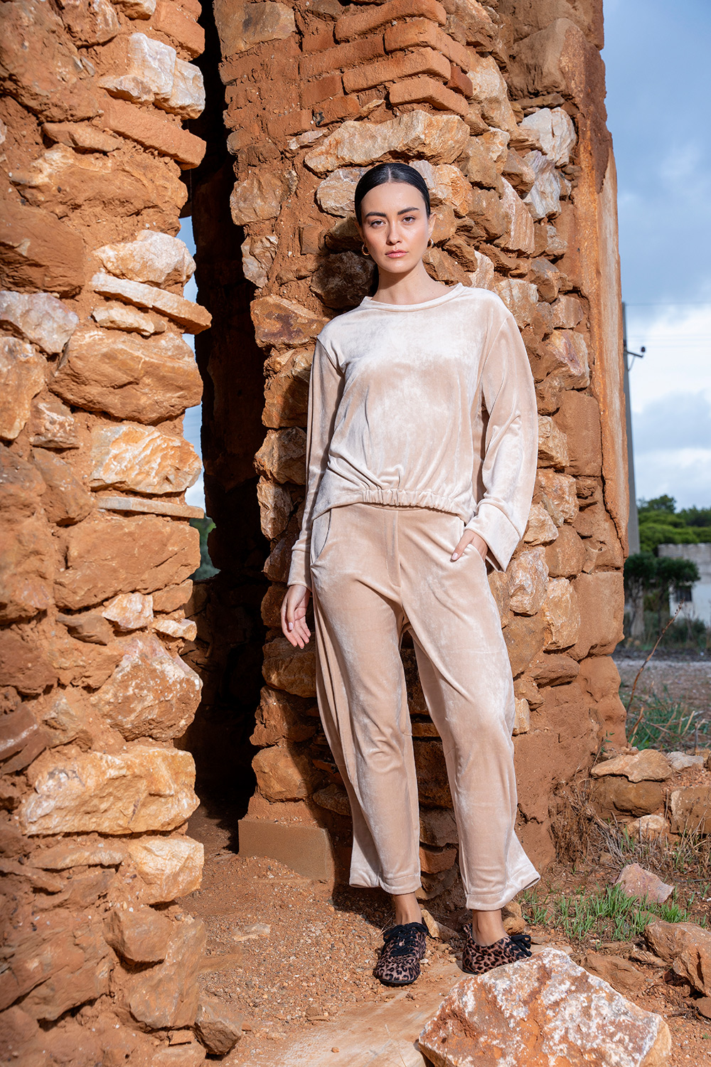 Αίσθηση πολυτέλειας με απαλή υφή: αυτό το σαλάβαρι από βελούδο αγκαλιάζει το σώμα χωρίς να σφίγγει — ιδανικό για να αναδείξεεις το στυλ σου σε κάθε περίσταση. Συνδύασέ το με ένα απλό τοπ για κομψότητα ή με πιο επίσημα στοιχεία για βραδινή εμφάνιση.